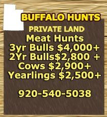 - Buffalo hunts starting at $2500 - 920-540-5038