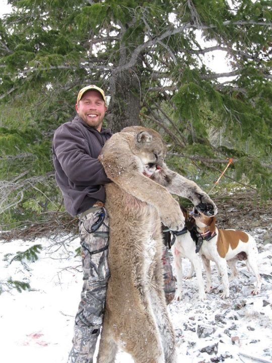Mountain lion hunting is one of our hunts we specialize in! These mountain lion hunts take place from December thru February. They are conducted with the use of 4 x 4, ATV, UTV, and snow machines. This mountain lion hunt is a one on one hunt with multiple packs of hounds and houndsmen to accommodate multiple hunters. During this hunt weather and temperatures can change very quickly. This is all part of the excitement and pursuit of this magnificent animal. Have yourself ready for conditions like this, It can get very cold while on the snow machine but then it can get hot while on foot tracking the wild mountain lion over terrain that that big Tom is familiar with. Depending on the time of the year it can get down to -20 degrees so it is important that you bring enough clothes to accommodate the weather change, from snow, ice or sleet. Please expect a rigorous hike, remember we cannot pick or control where the mountain lion will run. We will use a snow machine to get as far as we safely can."We are a Veteran friendly guiding service"