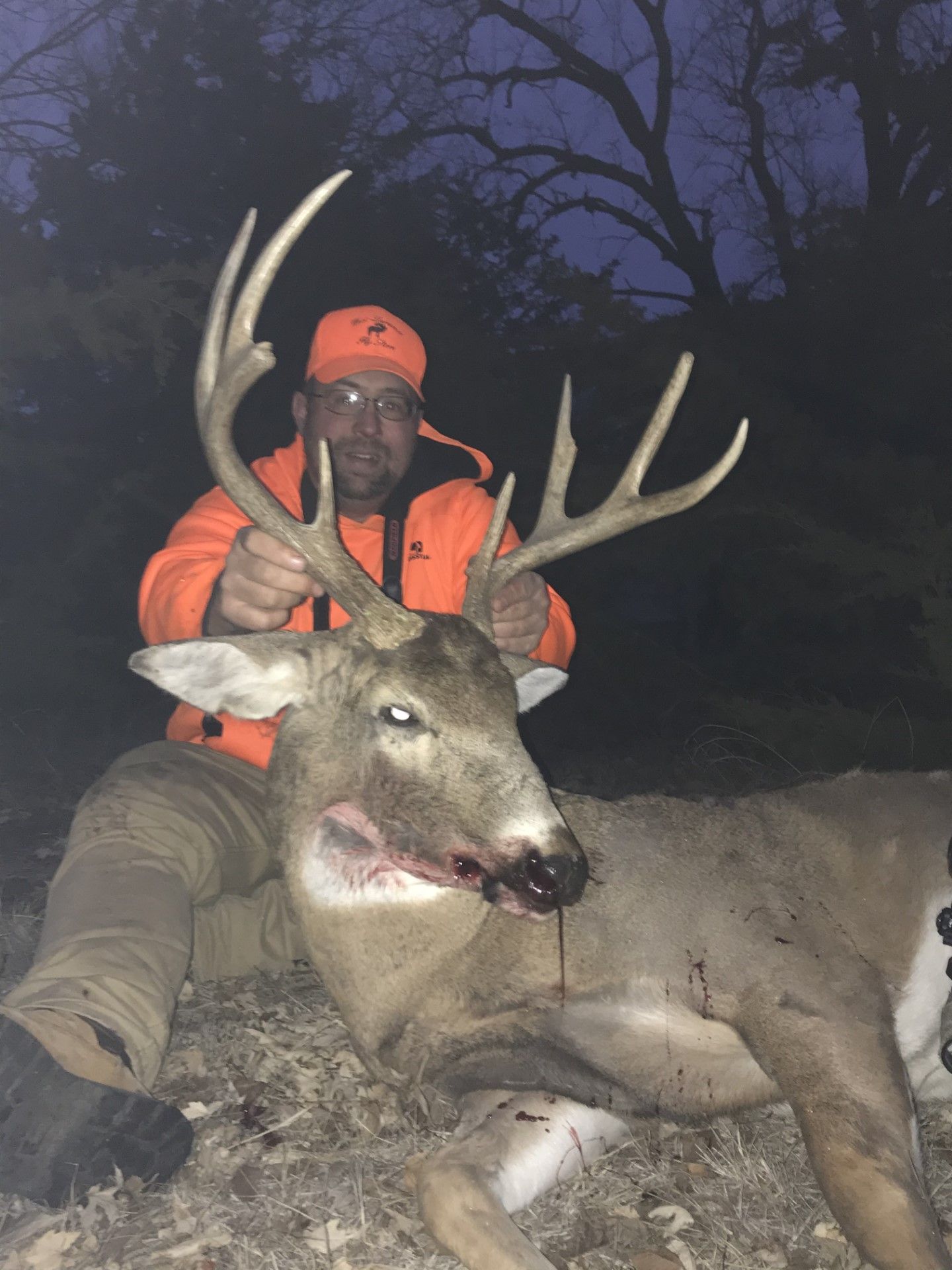 2024-2 openings for Kansas Whitetail Archery deer hunting 1st or 3rd week of November. Whitetail deer hunts are 6 day bow hunts. We have ladder and box stands available on the property. Text us for areage of area you will be able to hunt. We have many stands. Lodging is available. Please contact us about specifics of lodging. There is a kitchen for your cooking needs.
